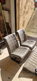 set sedili anteriori e posteriori e pannelli fiat panda 30 1982. interno molto raro da trovare. DESCRIZIONE: Anteriore destro buono, presenta qualche crepa il tessuto. anteriore sinistro, oltre ad avere uno strappo sullo schienale ha qualche crepa sulla seduta e il telaio da saldare. non hanno ruggine sedili posteriori in ottime condizioni, con annesse femmine delle cinture non originali inclusi nel set: pannelli posteriori con cinture anteriori e relativi attacchi, pannello baule, pannello destro anteriore, vari fermi per la cappelliera e sedili posteriori