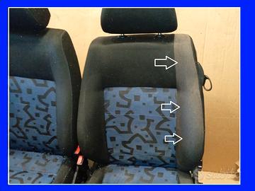 Applicabilità marca: Volkswagen Applicabilità modello: Golf Cabriolet VENDO coppia sedili anteriori panchetta posteriore completa in tessuto nero con parte centrale azzurro / nero fantasia , per VOLKSWAGEN Golf MK4 Cabriolet dal 1998 al 2002 . Ricambi USATI che presentano dei difetti . Le iimbottiture sono ancora buone , le spallette dei sedili non hanno strappi o lacerazioni , però la parte esterna delle spallette sedile di guida hanno un tono più chiaro rispetto alle altre ( forse sostituite o rifatte ) , la parte azzurra della seduta di guida è più sbiadita / logora delle altre . In un punto della seduta posteriore è presente una piccola bruciatura di sigaretta ( i difetti sono visibili in foto ) . I sedili hanno bisogno di essere puliti per bene (sono inevitabilmente sporchi ) e necessitano di essere sistemati da un tappezziere per riportarli ad una stato Controllate ATTENTAMENTE che i ricambi siano adatti e compatibili con la Vostra auto . Prezzo Euro 180 . Possibile spedizione in tutta Italia con Corriere Espresso al costo di Euro 55 . Pagamenti accettati PAYPAL e Bonifico Bancario . Possibile anche CONTRASSEGNO previa maggiorazione di Euro 5 per spese di incasso . NO POSTEPAY . Per info e trattative 0423677138 , chiedere ESPRESSAMENTE del Sig. MARCO