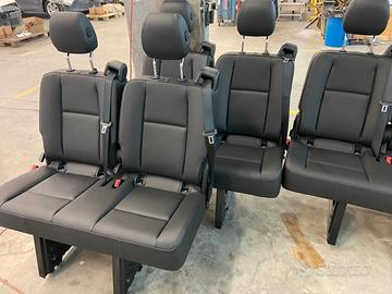 Vendesi 7 sedili originali Mercedes Sprinter Tourer 317 CDI 2025 in ecopelle nera, tutti reclinabili, completi di guide e pavimento, così composti: