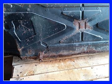 L'auto donatrice è stata ferma per tanto tempo , di conseguenza nell'abitacolo è ristagnata umidità che ha compromesso il dorso dello schienale panchetta posteriore , alcune parti metalliche , tra cui il fondo dei sedili anteriori , hanno tracce di ruggine , le imbottiture sicuramente avranno tracce di muffa .