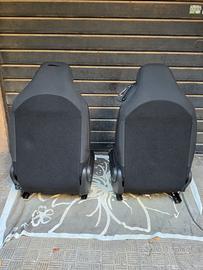 Come ricambio di tappezzeria, vendo sedili in tessuto nero per Smart 453 ForTwo di primo equipaggiamento, smontati dall'auto con 45.000 KM e puliti (in foto si stavano asciugando all'aria). Regolabili in altezza, sono seminuovi. Come è visibile in foto è presente solo un piccolo segno sulla seduta del conducente, poco percettibile. Sono compresi nella vendita i due supporti (danneggiati) in plastica per l'appoggio dei connettori sotto il sedile (codice ricambio A4539192400 destro e A4539192300 sinistro). Non spedisco, ritiro a mano su Roma.