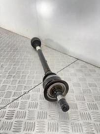 Semiasse posteriore BMW X5 E70 F15 X6 F16in acciaio con leggere ossidazioni superficiali localizzate sul corpo centrale e sulle flange, cuffie parapolvere integre senza lacerazioni evidenti. Millighe lato ruota e lato differenziale in buono stato visivo