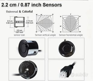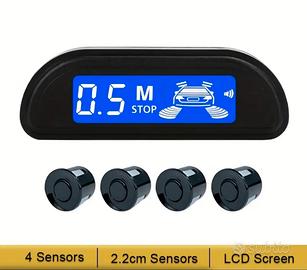 Sistema di sensori per il parcheggio del veicolo colore nero, con display a LED blu e indicatore sonoro - 4 sensori, forma poligonale, forniture per la sicurezza automobilistica, facile installazione, sistema di assistenza per il parcheggio | Sistema di sensori per auto moderna | Display a LED blu