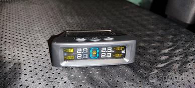 Sistema di monitoraggio della pressione dei pneumatici compatibile con quatto tipi di sensori esterni, fornisce letture in tempo reale di pressione e temperatura con installazione . non invasiva e pratico interruttore di rilevamento con pannello solare.