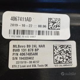 Serbatoio AdBlue originale Audi, codice OEM 8W0131878BP, completo di pompa, valvola elettronica e sensore di pressione integrato codice 8W0131969L. Smontato da veicoli Audi con motorizzazioni diesel Euro 6, questo modulo fa parte del sistema SCR per la riduzione delle emissioni NOx. Il ricambio è fornito completo e testato, pronto per l’installazione plug & play su impianti OEM.Ricambio noto anche come: serbatoio AdBlue Audi A4 B9, unità SCR Audi A5 diesel, modulo pompa AdBlue 8W0131878BP, sistema emissioni 2.0 TDI Euro 6, pompa AdBlue originale Audi, serbatoio HELLA SCR completo, sensore AdBlue 8W0131969L, unità di dosaggio urea Audi, serbatoio sistema riduzione NOx, vasca AdBlue Audi 2.0 TDI e a livello internazionale: Audi AdBlue tank unit, SCR urea pump module, diesel emissions tank Audi A4 A5