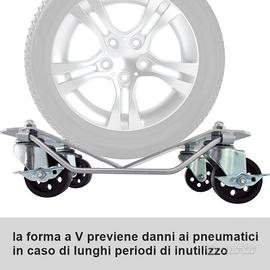 Per utilizzare i carrelli sotto ruota occorre sollevare l'auto con un cric idraulico da un lato e posizionare i carrelli in corrispondenza dei pneumatici, una volta adagiata la vettura sui primi due carrelli si ripeterà la stessa operazione sul lato opposto.