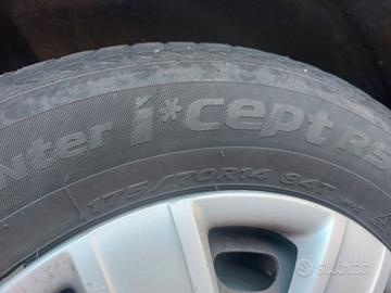 Set di 4 cerchi in acciaio 14" con montate gomme invernali Hankok 175-70-14 ormai esaurite, attualmente utilizzato su Vw Polo, no copricerchi, vendo a 55 euro totali Ideali per secondo treno gomme estive/invernali Visibili a Crema o Brescia