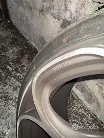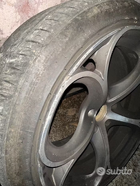 Vendo cerchi per Alfa Romeo, marca OZ. Diametro 18 Montano attualmente dei copertoni 225/40ZR18 Sono a metà vita circa, ma il posteriore destro è bucato; con una riparazione lo si puó anche aggiustare, ma io consiglio comunque di cambiarli tutti e 4, nel caso. Presenti alcuni segni di usura, come alcune righe da parcheggio (vedi foto). Li montavo su una Giulietta, ma penso che cambiando copertoni sia possibile montarli anche su una Giulia o su altre alfa. Dispongo di altre foto, chiedete per info.