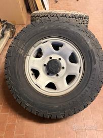 Vendesi set completo di 5 ruote (4 + scorta) originali Toyota di derivazione 4 runner ma ideali per fuoristrada con attacco a 6 fori. Con pneumatici Continental CrossContact ATR 215/80 R15. Prezzo trattabile