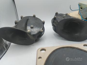 kit per auto vintage composto da autoradio casse acustiche e coppia di trombe