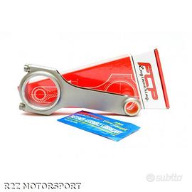 Le bielle della sezione H-Beam e I-Beam sono forgiate in acciaio AISI 4340 (En24). Trattato termicamente con HRC 35-38 e poi pallinato per una maggiore resistenza alla fatica. Le estremità piccole sono boccole per un perno completamente flottante e le estremità grandi sono dotate di elementi di fissaggio ARP di alta qualità con bulloni con specifiche diverse disponibili a seconda del livello di prestazioni richiesto.