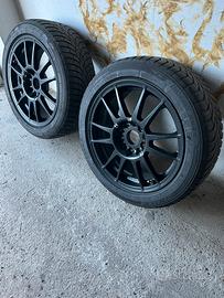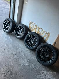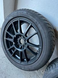 Vendo per cambio auto bellissimo set di cerchi EVOCORSE R16, 5x114,3, 6.5 j x 16fh2, et 38, foro centrale 60,1, con treno gomme TOYO TIRES M+S 195/50, R16, 88H in ottimo stato, dotati ciascuno di valvola TPMS per controllo pressione pneumatici. Precedente installati su Suzuki Swift Sport.