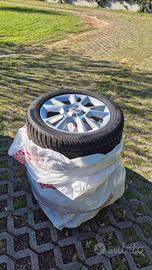 Le gomme sono invernali e in buone condizioni, con battistrada ancora valido. I cerchi non presentano crepe o danni strutturali, solo normali segni d’uso.