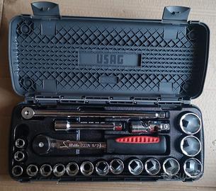 set di chiavi a bussola professionali USAG con attacco da 1/2", in condizioni eccellenti, praticamente nuovo/pari al nuovo. Strumenti di altissima qualità, ideali per meccanici, hobbisti esigenti o professionisti che cercano l'affidabilità del marchio USAG.