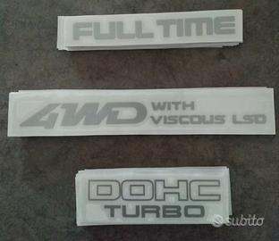 Set completo di adesivi per Mazda 323 GT / GTX / GTR (codice telaio BG), sono stati replicati gli originali sia come fattura (fondo trasparente con applicate sopra le diciture, colore delle diciture stesse) che come dimensioni. Sono prodotti in PVC per uso in cartellonistica da esterno, resistente alle intemperie e al sole. Il prezzo è di €30,00 spedizione in Italia inclusa, pagamento tramite PayPal.
