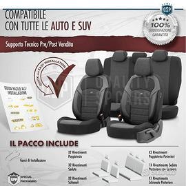 Set Completo COPRISEDILI Professionali Idonei perCitroen C4 C5 Aircross , Anteriori, Posteriori e Relativi Poggiatesta | TessutoNero Traspirante e Dettagli in PELLE Pu, CON AIRBAG SYSTEM | Omologati eCertificati TÜV "" Si Adattano PERFETTAMENTE ai Sedili della Tua Citroen C4 C5Aircross, Copertura TOTALE, come Fossero di Serie; Compatibile con AIRBAG eRECLINABILI"" - STOP SUDORE | Numerosi Strati di Materiale Traspirante Permettono all' ariadi Circolare. - QUALITA' ESTREMA | Schienale Ergonomico con Numerosi strati di Materiali diAlto Pregio e Cuciture a Catena, per un Confort senza pari, anche nei viaggipiù lunghi. - ADERENZA PERFETTA | Design Elegante e Moderno, Rinnova gli Interni dell' Autocon una Aderenza ai Sedili Perfetta. - CERTIFICATI A LIVELLO EUROPEO | TÜV - Martindale Friction Test - Oeko TexStandard 100. - APPLICAZIONE FACILE | Compatibilità Testata - Tutorial di InstallazioneDisponibile. - PROTEZIONE | Proteggono i Sedili di Serie da Usura, Graffi e Sporco. COMPATIBILITA: - Adatti per Citroen C4 Aircross - Adatti per Citroen C5 Aircross NON COMPATIBILE su Sedili Posteriori con Bracciolo Centrale e Sedili PosterioriSemi Ribaltabili DETTAGLI TECNICI: - N° Pezzi: 11 Totali - Materiale: Tessuto Traspirante, Spugna Ultra R23D - Colore: Nero - Resistenza Sfregamento: 100.000 Martindale - Certificazione Sicurezza Tessuti: OEKO-TEX Standard 100 - Certificazione TÜV: Si - Compatibile con Airbag: Si - Resistenza Temperatura: - 35°C / +80°C - Confezionamento Originale: Box con Cerniera e Maniglia - Installazione: Elastici + Ganci Metallici PER INFO CONTATTARE AL 3927091031 ANCHE LINEA WhatsApp CONSEGNA: - Effettuiamo Spedizioni 24-48H in TUTTA ITALIA - Ritiro in Sede con Possibilità di Visionare il Prodotto PAGAMENTI: - PayPal - Con Carta - Bonifico Bancario - Alla Consegna con Contrassegno