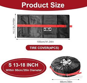 Set di 4 Borse per Pneumatici Auto, 13-18 Pollici Copriruota di Scorta, Impermeabili Antipolvere Copertura Protettiva per Pneumatici, Porta Gomme con Maniglia e Borsa, Ø66 cm, S. Informazioni su questo articolo 【Set da 4 Pezzi di Pneumatici】Riceverete un set di 4 copriruota di scorta dotati di fibbie regolabili per riporli facilmente. Queste Copriruota di Scorta adatte per pneumatici fino a 66 cm di diametro e si adattano a pneumatici da 13 a 18 pollici (verificate le dimensioni dei pneumatici prima dell'acquisto). 【Robusti e Durevoli】Le Borse Porta Gomme sono realizzate in resistente tessuto 190T Taffeta, durevole, impermeabile e antistrappo, in grado di sopportare forti tensioni senza deformarsi. queste borse per pneumatici Proteggi i tuoi pneumatici dalla ruggine e dallo sporco mentre sono parcheggiati, offrono una soluzione affidabile e durevole per trasportare e conservare i pneumatici della tua auto. E basta pulire con acqua pulita. 【Facile da Installare】Le nostre Copertura Protettiva per Pneumatici sono contrassegnate per distinguere quale pneumatico appartiene a quale lato. ll design con cinghie regolabili facilita lo stoccaggio e il prelievo. ll design con maniglie su entrambi i lati,e le sue dimensioni possono essere regolate liberamente per un facile smontaggio e trasportabilità. 【Protezione Completa】Il materiale esterno delle nostre borse per pneumatici è realizzato in tessuto impermeabile rivestito in PU, con caratteristiche di impermeabilità, resistenza alla polvere, al vento, alla neve e ai raggi solari. Proteggono i pneumatici da umidità, sporco, corrosione e altri agenti esterni, garantendo la pulizia dell'abitacolo e prolungando la durata dei pneumatici. PRODOTTO NUOVO E MAI USATO.