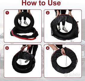 【Robusti e Durevoli】Le Borse Porta Gomme sono realizzate in resistente tessuto 190T Taffeta, durevole, impermeabile e antistrappo, in grado di sopportare forti tensioni senza deformarsi. queste borse per pneumatici Proteggi i tuoi pneumatici dalla ruggine e dallo sporco mentre sono parcheggiati, offrono una soluzione affidabile e durevole per trasportare e conservare i pneumatici della tua auto. E basta pulire con acqua pulita.