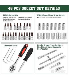 Vendo Set di 46 chiavi a cricchetto da 1/4", con cricchetto reversibile, con set di bussole metriche e barra di estensione per riparazione automatica e uso domestico