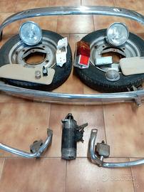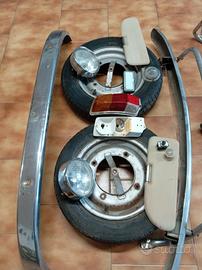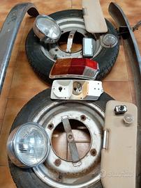 Set Fiat 500 d'epoca originali Acquisti anche singoli pezzi! PREZZO TRATTABILE!! . 2 cerchioni originali fiat 500 con gomma 125 Sr 12 50€ . Paraurti frontale con BARRA paracolpi 80€ . Paraurti posteriore con tubolari laterali paracolpi 80€ . 2 chiari anteriori con frontalino cromato originale 80€ . Fanale posteriore destro 30€ . Gemma anteriore 5€ . Motorino avviamento 60€ . Coppia parasole originali 25€ . Posacenere originale 8€ . Accessori vari interruttore e lucina 5€