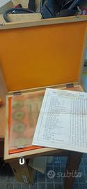 cassetta originale epoca composta da set di 28pz. frese piane a 45° e 55°per rettifica sedi valvole auto e moto d'epoca completa di manuale