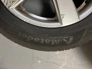 Vendesi set completo di 4 gomme estive 185/60 R15 H con relativi cerchi in lega Mak causa permuta auto (Wolkswagen Polo) + relativi bulloni + gomma di scorta della stessa dimensione su cerchio in ferro. Le gomme hanno solamente 5000km, praticamente nuove. I cerchi sono in buone condizioni (lievemente graffiati in alcuni punti). La gomma di scorta è nuova. Set 4 gomme: Matador Hectorra 3 Gomma di scorta: Dunlop Sport Potevo caricare solo 6 foto ma ne ho disponibili altre.
