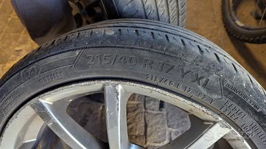 4 cerchi in lega r17 ATP con 5 fori, in condizioni come da foto + gomme Barum 215/40 r 17 usate circa per 4 stagioni. Vendo per passaggio a gomme 4 stagioni