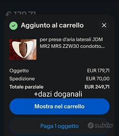 Vendo branche laterali per Toyota MR2 Spyder. Realizzate in vetroresina artigianalmente, in stato grezzo: necessitano di rifinitura e verniciatura in base alle proprie preferenze.