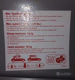 lunghezza: 232cm larghezza: 70cm altezza: 40cm ancora in ottime condizioni, perfetto per lunghi viaggio e come porta sci. Compreso di attacchi per le sbarre dell'auto. Locato a San Marino.