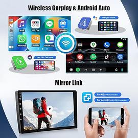 【Wireless Carplay + Wireless Auto + Mirror Link】 Utilizza il tuo iPhone o telefono Android in modalità wireless attraverso il dispositivo e controlla le app mobili. È possibile effettuare chiamate, inviare messaggi, riprodurre musica, navigare e molto altro ancora con la voce o il tocco. Collegate il vostro smartphone al dispositivo tramite WIFI e riflettete lo schermo del vostro telefono sul display del dispositivo. È possibile utilizzare le app, la musica, i video, ecc. dello smartphone sul dispositivo.