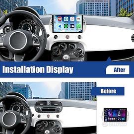 SIXWIN 4+64G Autoradio Android 13 con CarPlay/Android Auto/Mirror Link per FIAT 500 2007-2015,9 Pollici HD TouchScreen Schermo Navigatore WiFi Bluetooth 5.0 FM/RDS 32EQ+AHD Retrocamera