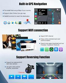 【Modulo WIFI+GPS incorporato】 Collegandosi a Internet tramite un hotspot WIFI o una connessione di rete, è possibile navigare su siti web, trasmettere contenuti online, scaricare app, ecc. sul dispositivo. Grazie al supporto di mappe online e offline, la navigazione è precisa e semplice. È inoltre possibile utilizzare la navigazione vocale e le informazioni sul traffico in tempo reale.