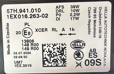 SKODA KODIAQ ORIGINALE USATO FARO DESTRO FULL LED