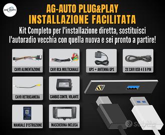 L'installazione avviene con il sistema plug&play AG-AUTO, che assicura un montaggio semplice come la radio originale, anche in autonomia. Tutti i cavi sono separati, etichettati con manuale in italiano.
