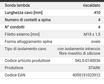 Vendo sonda lambda (sensore di ossigeno) con riscaldamento. Le caratteristiche principali sono sulla foto. La sonda è nuova, mai montato