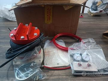 Sospensione pneumatica acquistata in coppia, utilizzata singolarmente. Ad oggi venduta anche singolarmente dalla casa. Compreso di istruzioni, garanzia, accessori di montaggio e manometro.