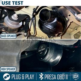 Sound Booster COMPLETO per ALFA ROMEO | Panthera LeoActive Sound MADE IN GEMANY | Unico con Montaggio Plug & Play su Presa OBDII - VERSIONE AVANZATA | Set Completo con ""Speaker Alto"" Perun Suono Reale, Speaker Basso, Presa OBD II, Modulo Panthera. - PLUG & PLAY UNICO | L'unico Esistente con Collegamento diretto viaBluetooth su presa OBD II, senza tagli né modifiche. - SOUND REALE | Suoni Selezionabili Intercambiabili, Provenienti da Registrazionesu Super Car Reali in Sala Audio. - QUALITÀ MADE IN GERMANY | Software incluso, totalmente regolabile su girimotore e accelerazione. REQUISITI DI COMPATIBILITÀ: Con Presa OBD II - ALFA ROMEO STELVIO - ALFA ROMEO GIULIA - ALFA ROMEO GIULIETTA - ALFA ROMEO 159 - ALFA ROMEO 147 - ALFA ROMEO BRERA - ALFA ROMEO SPIDER - ALFA ROMEO MITO - ALFA ROMEO GT - ALFA ROMEO 8C - ALFA ROMEO 4C MONTAGGIO (Si Raccomanda il montaggio da parte di un Professionista per EvitareDanneggiamenti a componenti Elettronici o Strutturali del Veicolo.) 1. Posizionamento degli Altoparlanti (Bass + Tweeter) 2. Collegamento all'Alimentazione (Vano Fusibili) 3. Collegamenti del Sistema 4. Attivazione e Configurazione DETTAGLI TECNICI: - Materiale: Acciaio - Colore: Nero - Finitura: Traslucida - Peso: 1073Gr Cavi e Moduli - 1096Gr High Speacker - 2930Gr Bass Speacker - Potenziale dB: +130dB - Tipi di Altoparlanti: Alti High Speacker , Bassi Bass Speacker - Numero di Altoparlanti: 2 - Collegamento: OBD II - Nr Tipi Suoni: 10 - Fissaggio: Bullonamento o Saldatura - Condizioni: Nuovo - Confezionamento: Originale PER INFO CONTATTARE AL 3927091031 ANCHE LINEA WhatsApp OPPURE VIA E-MAIL: rtautoitalia2018@libero.it CONSEGNA: - Effettuiamo Spedizioni 24-48H in TUTTA ITALIA - Ritiro in Sede con Possibilità di Visionare il Prodotto - Vendiamo solo Articoli Nuovi PAGAMENTI: - PayPal - Con Carta - Bonifico Bancario - Alla Consegna con Contrassegno