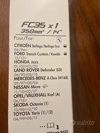 tecnologia comprovata per prestazioni di pulizia affidabili •Il design classico del supporto assicura una pulizia solida e uniforme del parabrezza grazie a diversi punti di contatto Telaio del tergicristallo metallico e rivestimento in grafite della lama •Il telaio serve come base per una distribuzione equilibrata della pressione •Consente un movimento perfetto sulla superficie del parabrezza •Il rivestimento riduce l’attrito per risultati di pulizia silenziosi e uniformi Facile da installare •Grazie ai sistemi di fissaggio standard, i tergicristalli possono essere montati facilmente per una rapida sostituzione Applicazioni Può essere utilizzato per diverse autovetture e veicoli commerciali leggeri