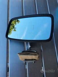Specchietto esterno retrovisore per auto d'epoca (probabilmente adatto a Fiat 127 ma non garantisco, sono disponibile a fornire ulteriori dettagli/foto in caso di reale interesse). Dalla base alla fine dello specchio misura circa 15 cm.