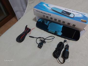 Specchietto retrovisore con telecamera anteriore e posteriore come nuova usata 15 gg cambio auto già predisposta. Non fornita di scheda SD.