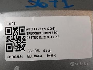 SPECCHIETTO RETROVISORE DESTRO AUDI A4 Avant (8K5) 8 PIN SPECCHIO CAGA (08>15)