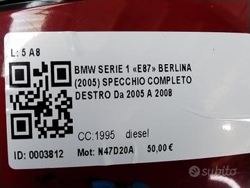 SPECCHIETTO RETROVISORE DESTRO BMW Serie 1 Serie (E87) 5 PIN SPECCHIO N47D20A (07>)