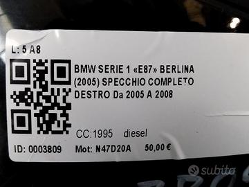 SPECCHIETTO RETROVISORE DESTRO BMW Serie 1 Serie (E87) 5 PIN SPECCHIO N47D20A (07>)