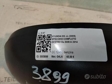 SPECCHIETTO RETROVISORE DESTRO HYUNDAI i20 1° Serie SPECCHIO MANUALE G4LA (08>14)