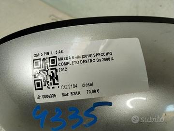 SPECCHIETTO RETROVISORE DESTRO MAZDA 6 Berlina 2° Serie 5 PIN (08>13)