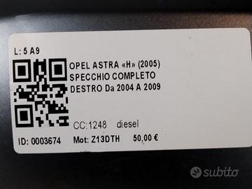 SPECCHIETTO RETROVISORE DESTRO OPEL Astra H Berlina 5 PIN SPECCHIO Z13DTH (04>07)