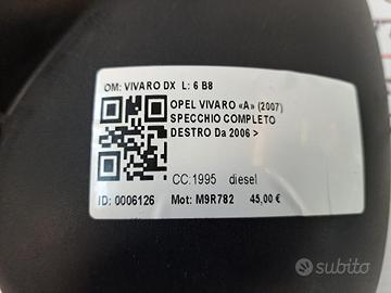 - Codice OE: SPECCHIO VIVARO DX