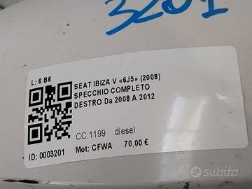 SPECCHIETTO RETROVISORE DESTRO SEAT Ibiza Serie 9 PIN SPECCHIO CFWA (08>12)
