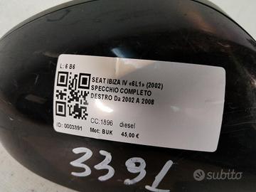 SPECCHIETTO RETROVISORE DESTRO SEAT Ibiza Serie SPECCHIO 9 PIN BUK (05>08)