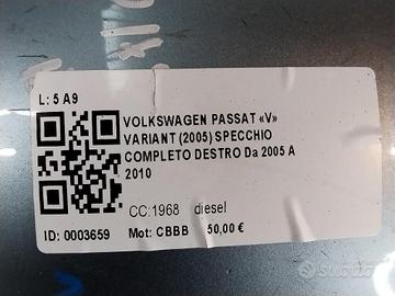 SPECCHIETTO RETROVISORE DESTRO VOLKSWAGEN Passat Variant 4° Serie SPECCHIO 6 PIN CBBB (05>10)